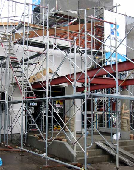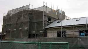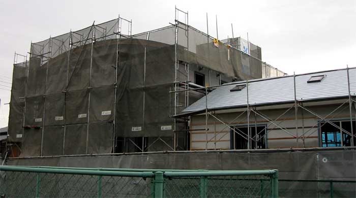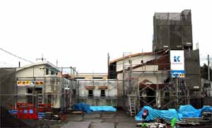 玄関付近を撮影(側面のレンガの貼付がスタート)