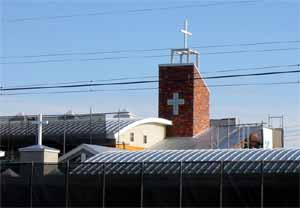 国道から会堂の屋根部分を撮影