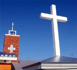 屋根上の十字架を撮影(上)