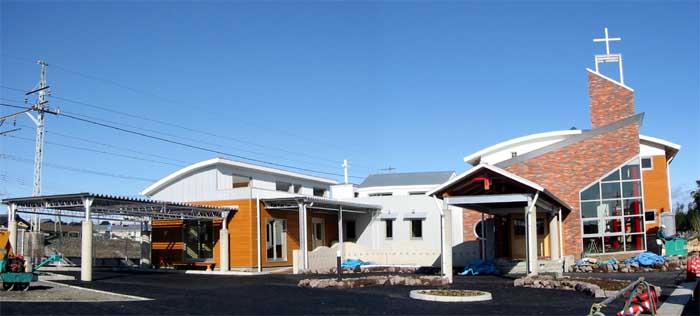 駐車場から会堂全景を撮影(会堂近くの舗装が完成)